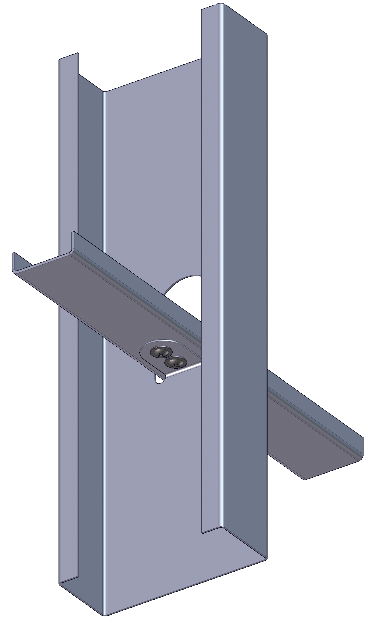 Typically, positive attachment is achieved through welding or by using angle clips and screws. The Kwik-Bridge Punch System serves as an alternative method of achieving positive attachment of the cold-rolled channel to the steel stud.